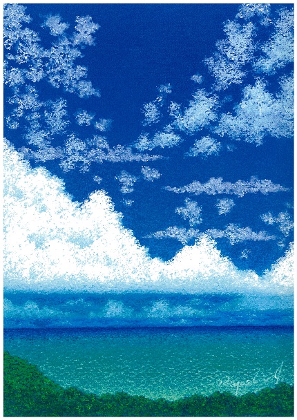 ★青空に映える真っ白い雲から、神々しい明け方の雲そして目に鮮やかな夕暮れ時の雲など。日々違った顔を見せる雲が描かれています。